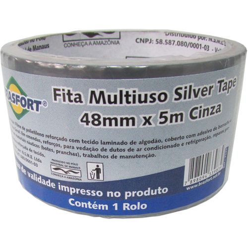 Fita Multiuso 48mm x 5m Silver Tape Cinza Brasfort