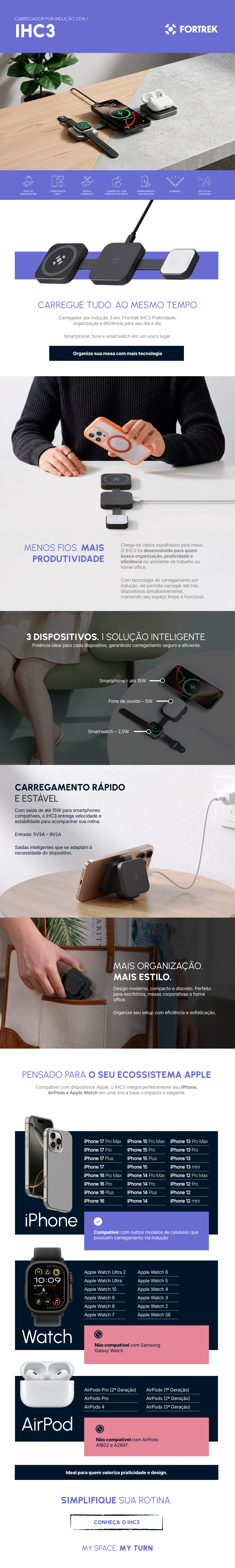 Se você procura um carregador sem fio eficiente, moderno e que simplifica sua rotina, o Fortrek IHC3 é a escolha perfeita para manter todos os seus dispositivos carregados com praticidade.